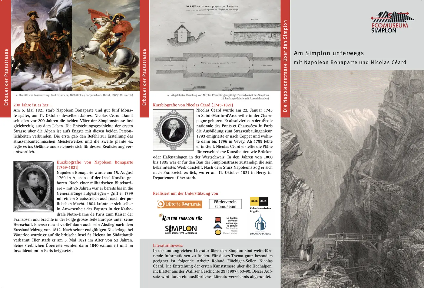 Vom Stockalperschloss in Brig bis zum Stockalperturm in Gondo gibt es zum 200. Todestag Napoleon Bonapartes und Nicolas Céards spannende Zeitzeugnisse und zahlreiche jüngere Hinweise zu entdecken. Die von der Stiftung Ecomuseum Simplon aus Anlass des Jubiläums realisierten Informationstafeln entlang der Strecke des historischen Stockalperwegs bieten von den Distanzsteinen im Garten des Palastes bis zur Alten Kaserne lebendige Geschichte zum Erwandern.