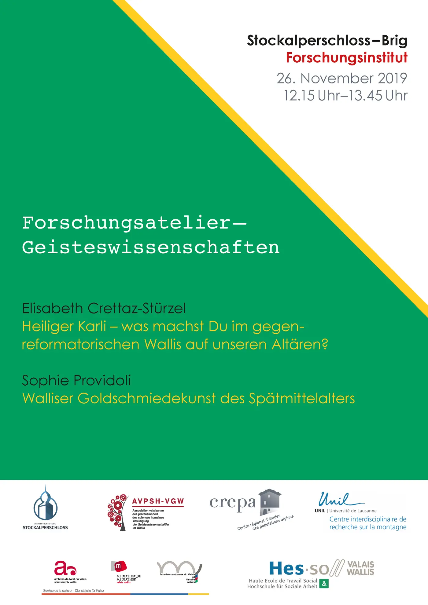 Am Anlass mit einem Beitrag vertreten sein wird die Kunsthistorikerin Elisabeth Crettaz-Stürzel, die zum Thema Heiliger Karli: was machst Du im gegenreformatorischen Wallis auf unseren Altären? sprechen wird.