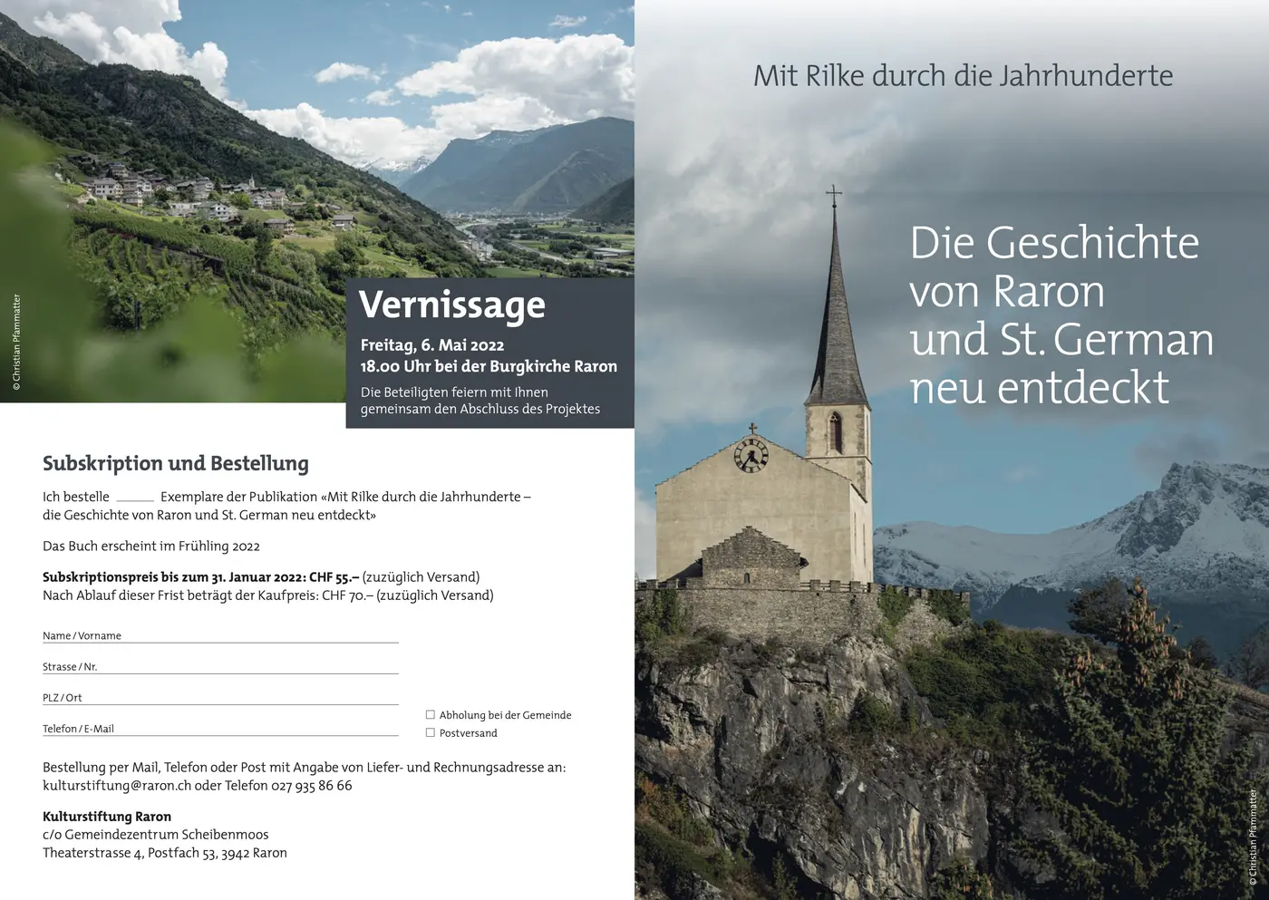 Im Auftrag der Kulturstiftung Raron hat das Forschungsinstitut zur Geschichte des Alpenraums eine umfassende Publikation zur Geschichte der beiden Ortschaften von der Frühzeit bis in die Moderne erarbeitet, welche die wechselvollen Geschicke der Dörfer, der Pfarrei und des Zenden während Jahrhunderten nachzeichnet.
