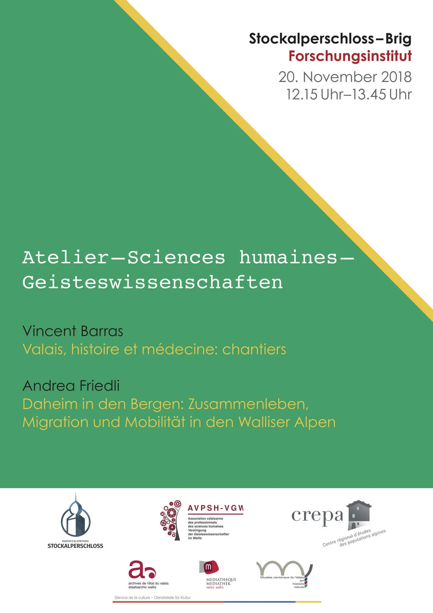 Der dritte Anlass der Veranstaltungsreihe «Atelier – Sciences humaines», welche die geisteswissenschaftliche Forschung im Wallis fokussieren, wurde am 20. November 2018 vom Forschungsinstitut zur Geschichte des Alpenraums in Brig durchgeführt.