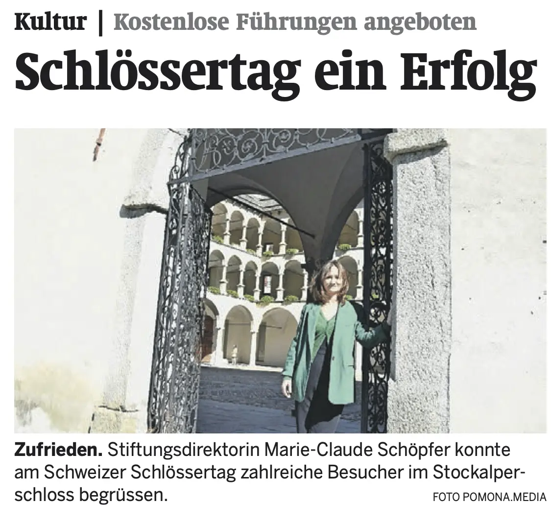 Wir danken dem Walliser Boten für den Bericht zu unserem ersten Schlössertag in Brig-Glis. Es war uns eine Freude, mehr als 100 grosse und kleine Gäste im Stockalperschloss empfangen zu dürfen. Wir freuen uns schon jetzt auf den Schlössertag 2021!